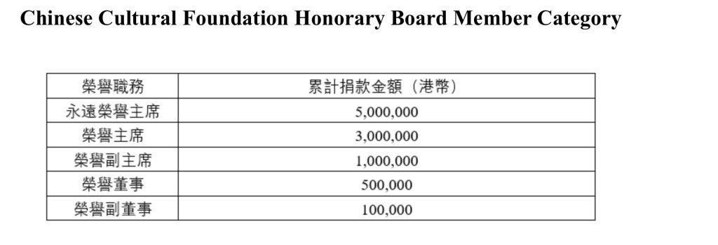 To express the gratitude of the Chinese Cultural Foundation, the honorary members of the Board of Directors of the Foundation may receive the following benefits:
